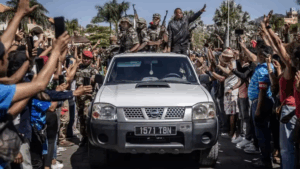 The president leaves Madagascar on a French aircraft, but the real strength comes from...